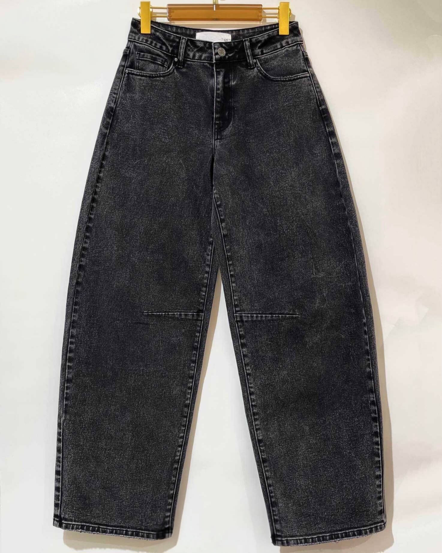 De diepe zwarte wassing maakt ’m eindeloos te combineren: stoer met sneakers, vrouwelijk met een top en hakken, of casual met een oversized trui.
