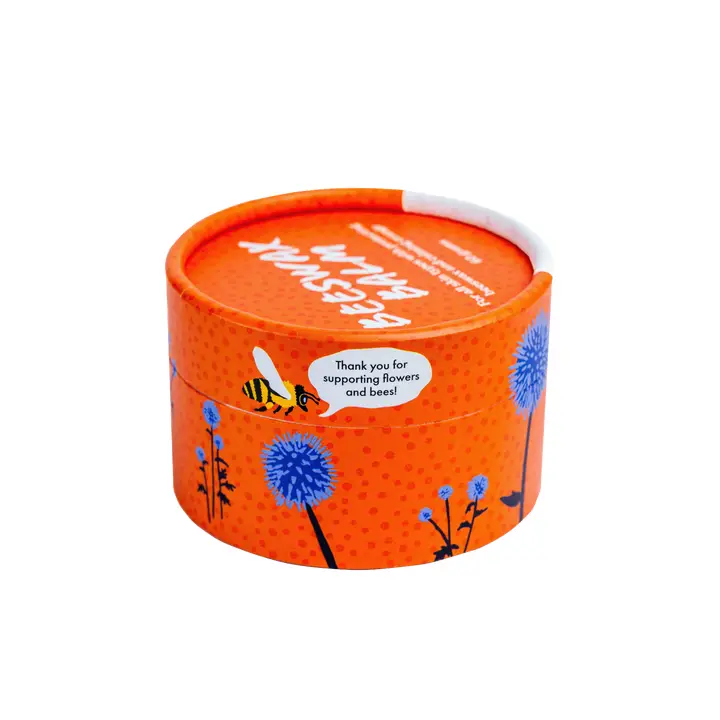 De balsem komt in een duurzame kartonnen verpakking met een prachtig ontwerp van pluizige boldistels. Geen plastic, geen onzin – wél mooi om te zien. Elk potje wordt met de hand gemaakt op Gotland door een klein familiebedrijf dat met hart en ziel werkt aan eerlijke en duurzame producten.