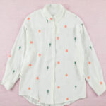 Breng de zon in je outfit, zelfs op een druilerige dag! Deze witte blouse met geborduurde palmboompjes en zonnetjes is jouw instant vakantiegevoel in kledingvorm. Gemaakt van 100% katoen met een heerlijke wafelstructuur β€” luchtig, comfortabel en zo zacht dat je hem eigenlijk niet meer uit wilt doen.