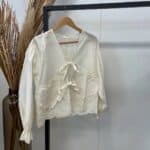 Deze trendy crèmekleurige top is een echte blikvanger! Met prachtige broderie, geborduurde details en schattige hartjeszakken is het een must-have voor iedereen die van een speelse, maar stijlvolle look houdt. Het luchtige, wijde model zorgt voor een heerlijk draagcomfort, terwijl de striktouwtjes voor een charmante sluiting zorgen en net dat beetje extra flair toevoegen.