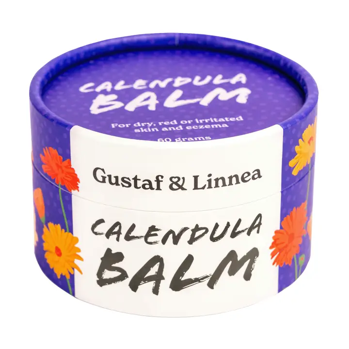 Hij komt in een duurzame kartonnen verpakking met een prachtig ontwerp van zonnige goudsbloemen. Plasticvrij, mooi en bewust. Elke balsem wordt met de hand gemaakt op Gotland door een klein familiebedrijf dat met veel zorg en liefde werkt aan hun producten, en dat merk je.