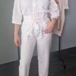Gemaakt van hoogwaardige, zachte denimstof, biedt deze jumpsuit een comfortabele pasvorm die de hele dag meegaat. Het strakke, witte design straalt een moeiteloze elegantie uit, terwijl de tijdloze snit zorgt voor een flatterende silhouet. Met handige details zoals zakken en een stevige ritssluiting, is deze jumpsuit zowel functioneel als modieus.
