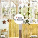 Ga voor een spetterende entree met dit feestgordijn! Dit gouden glinster gordijn zal direct bij binnenkomst zorgen voor een toepasselijke sfeer voor jouw verjaardagsfeest of bruiloft. Ook kun je het folie gordijn gebruiken als fotowand bijvoorbeeld! Daarnaast is het gordijn mega gaaf als versiering tijdens sinterklaas, kerst, oud en nieuw en carnaval!