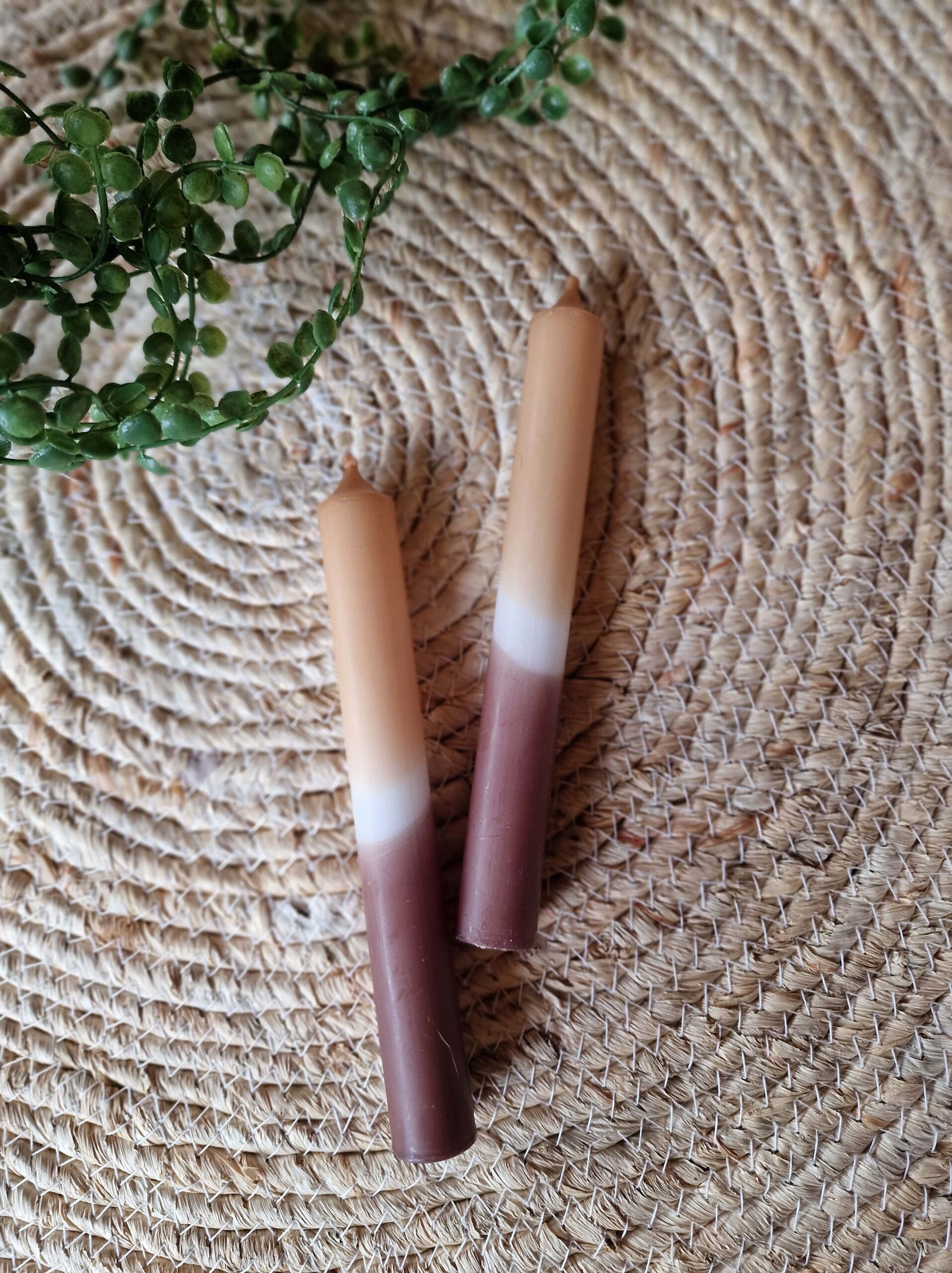 Deze dip dye dinerkaarsen in caramel tinten brengen meteen sfeer op tafel. De subtiele kleurverloop geeft een rustige, natuurlijke uitstraling die moeiteloos past bij elk interieur.