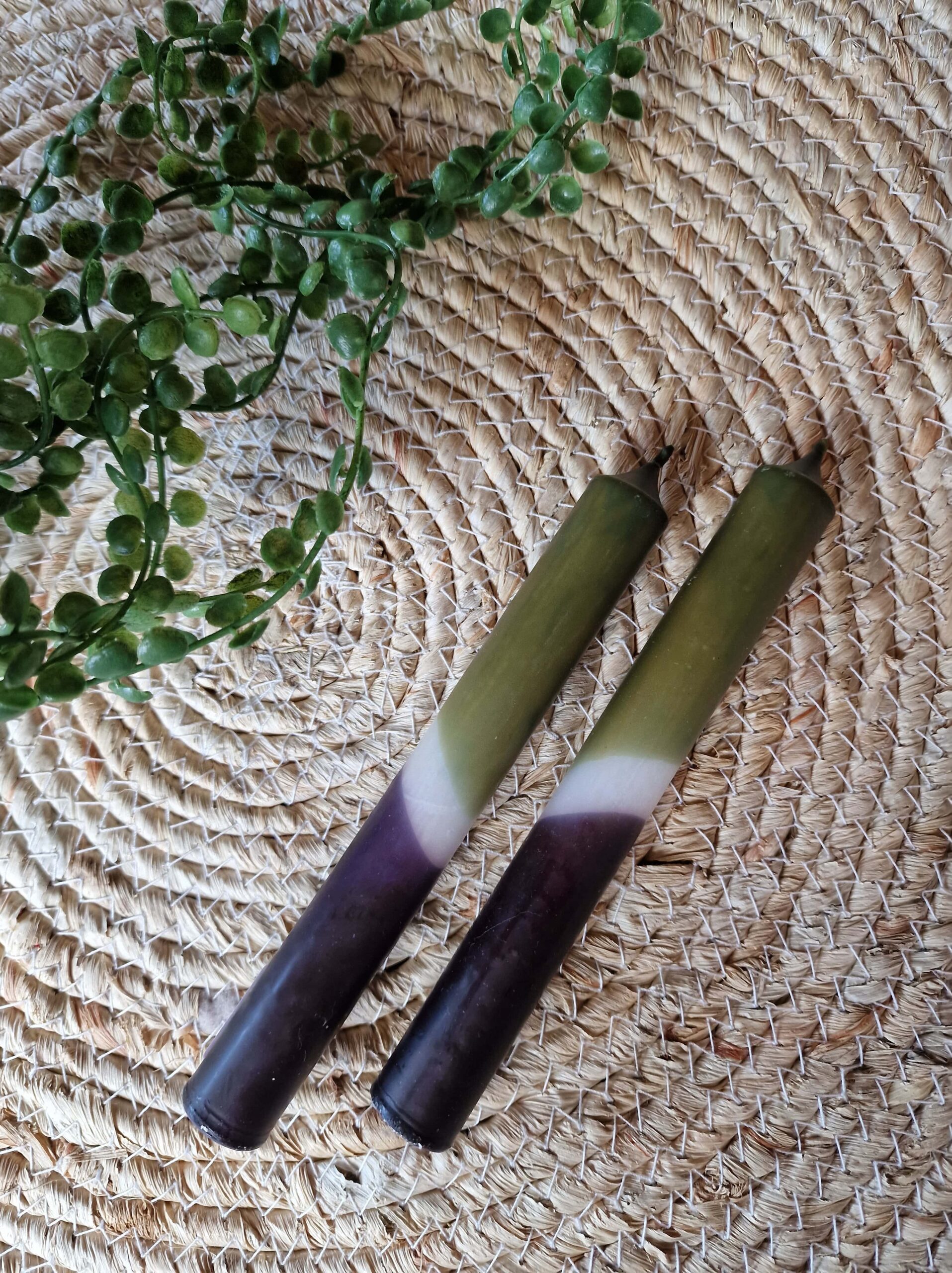 Deze dip dye dinerkaarsen combineren een dennen groene kleur met zwart, gescheiden door een subtiele lichte overgang. Het resultaat? Een rustige, natuurlijke look met net wat extra diepte.