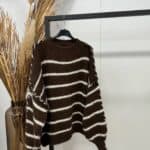 Trotseer de kou in stijl met deze heerlijke warme wintertrui. De klassieke bruine kleur met witte strepen geeft een tijdloze look die overal bij past.