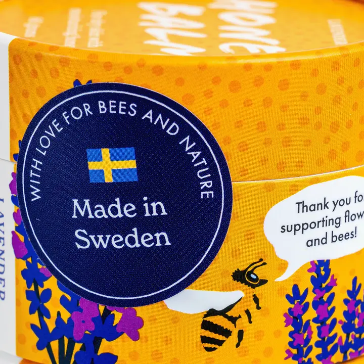 De honingzalf komt in een stevige, plasticvrije kartonnen verpakking met een prachtig ontwerp van wuivende lavendelbloemen. Elk potje wordt met de hand gemaakt op Gotland door een klein familiebedrijf dat met veel aandacht en liefde werkt aan duurzame producten, dat zie én voel je.
