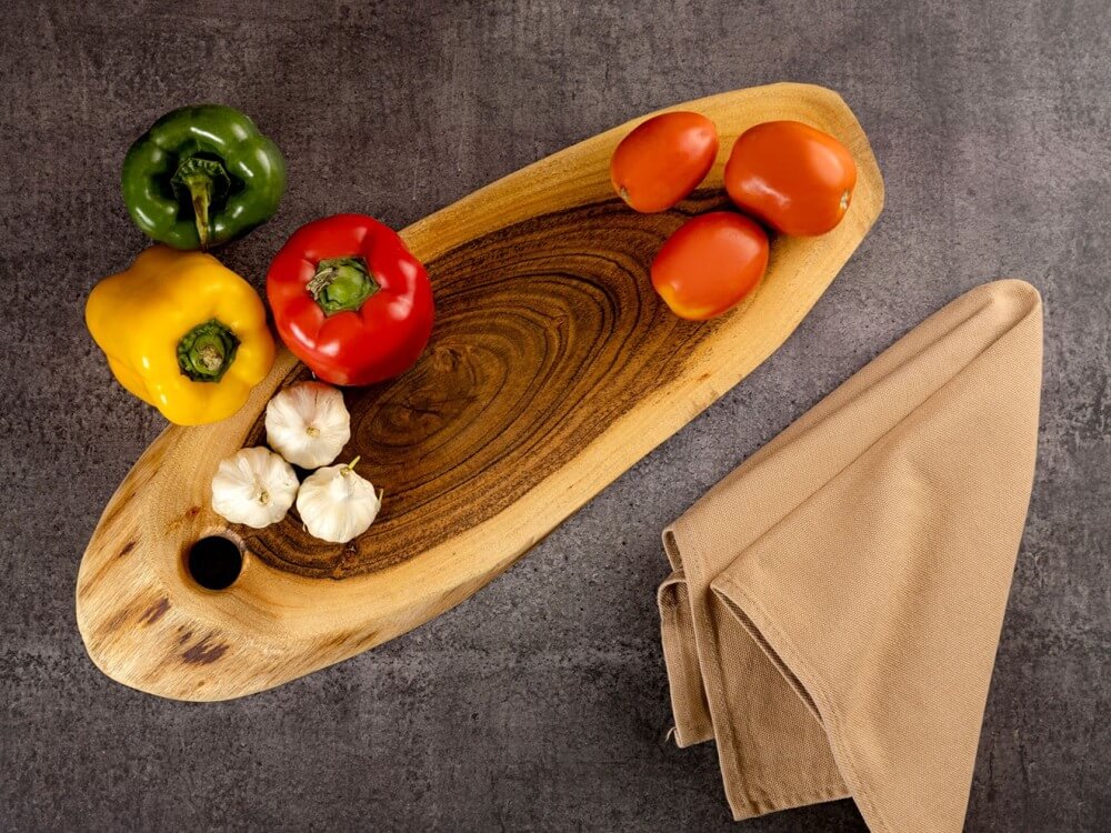 LET OP! Elke Snijplank is anders. Omdat iedere plank handgemaakt is van massief acaciahout, heeft elke plank zijn eigen nerven, kleurverschillen en karakter. Precies dát maakt ze zo bijzonder: je haalt niet zomaar een snijplank in huis, maar een uniek stukje natuur dat met zorg en vakmanschap is bewerkt.