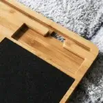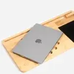 Computerstandaard – Kleur: natuurlijk hout – Materiaal: bamboe – Afmetingen: 60 x 31 x 2 cm – Gewicht: 1,8 kg – Geïntegreerde muismat van hoge kwaliteit – Ventilatiegaten – Houten gleuf om smartphone of tablet te plaatsen – Open rand voor oplaadkabel
