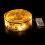 Creër een warme en romantische sfeer in uw kamer, kerstboom, kerstkrans, trap of feest met deze mooie lintslinger, met goudkleurige details! Het lint is volledig vormbaar door de koperdraad, waardoor het mogelijk is om op elke manier te vormen en elk type object in huis te versieren (bijvoorbeeld: in uw kerstboom of kerstkrans).
