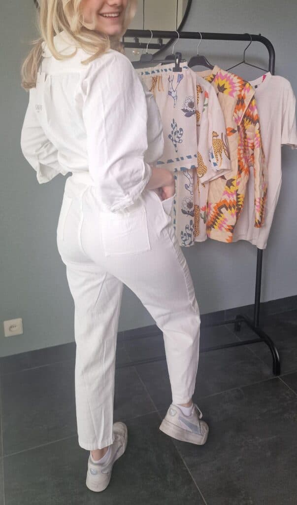 De trendy Mom Fit geeft je look een relaxte en tijdloze uitstraling, terwijl hij door de flatterende pasvorm ideaal is voor dagelijks gebruik.