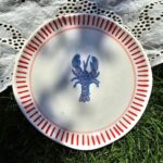 Breng zomerse sferen naar je eettafel met dit vrolijke Ariane ontbijtbord van Mica Decorations! Met een unieke blauwe kreeftprint in het midden en een speelse rand met roze cirkel en rode strepen, is dit bord een echte blikvanger tijdens het ontbijt, de lunch of een zomers diner.