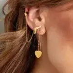 Houd jij ook zo van een mooie oorbellen? Shop dan snel deze gouden oorbellen met pistool en earcuffje, verbonden door een ketting! Mega trendy! De oorbellen zijn gemaakt van roestvrij staal en zijn 7,2 cm.
