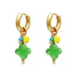 Gouden oorringen met een mooie groene klaver en kleurrijke steentjes
