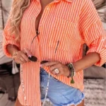 Deze oversized blouse in neon oranje streep is zo’n item waar je meteen vrolijk van wordt ☀️✨