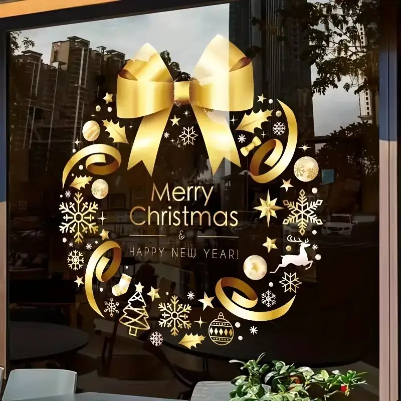 Breng de feestdagen tot leven met onze prachtige gouden kerst raamsticker.