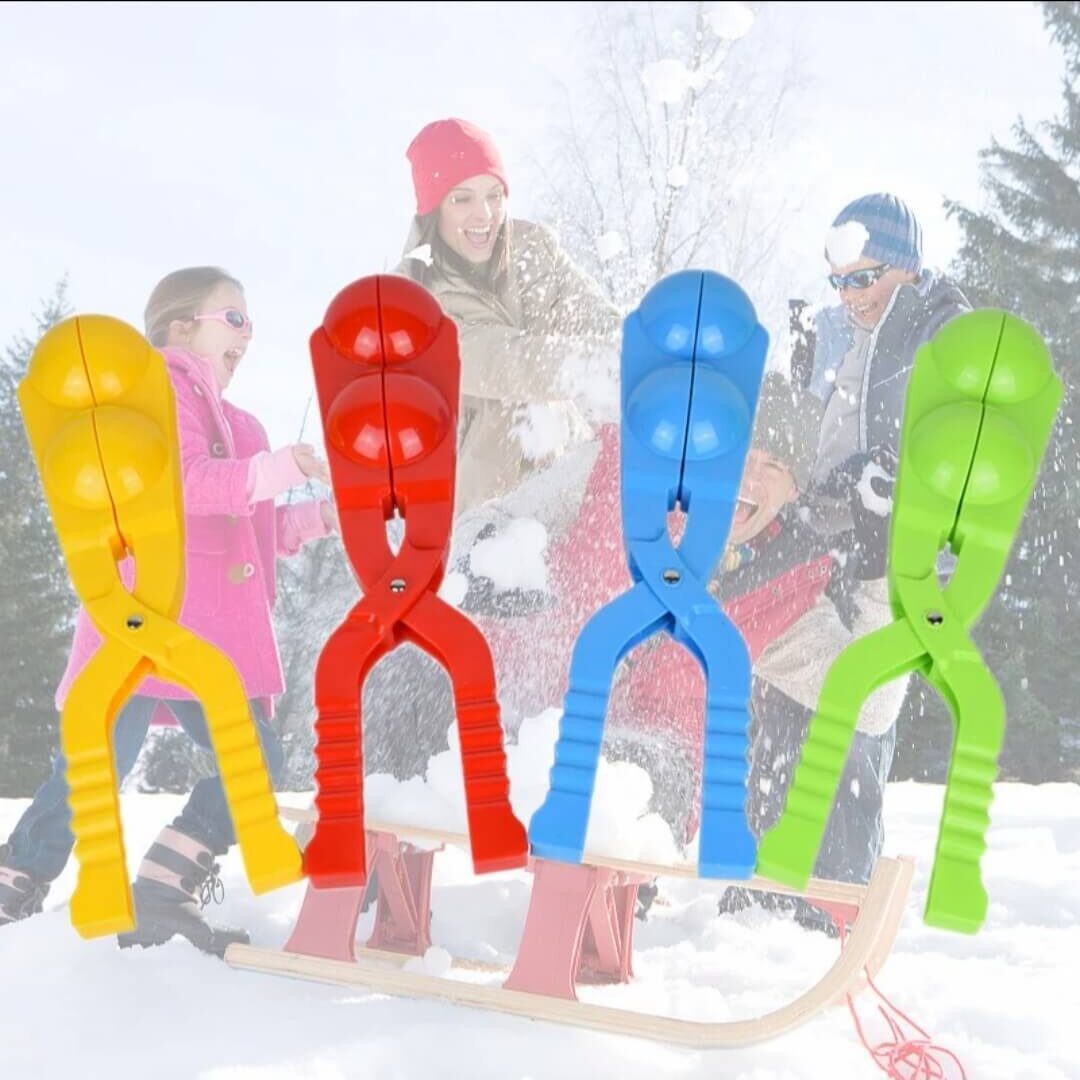 Deze dubbele sneeuwbaltang maakt het kinderspel (letterlijk) en is ook ideaal om in de zomer zandbollen of strand-ijsjes te “scheppen”.