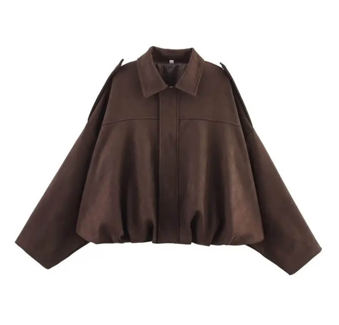 Stoer, zacht en moeiteloos stijlvol. Dit ruimvallende jasje van suèdine heeft dat perfecte bomberjack-effect – casual maar toch classy. De rijke bruine kleur is helemaal van nu en laat zich supermakkelijk combineren met een jeans, jurk of een comfy trui.