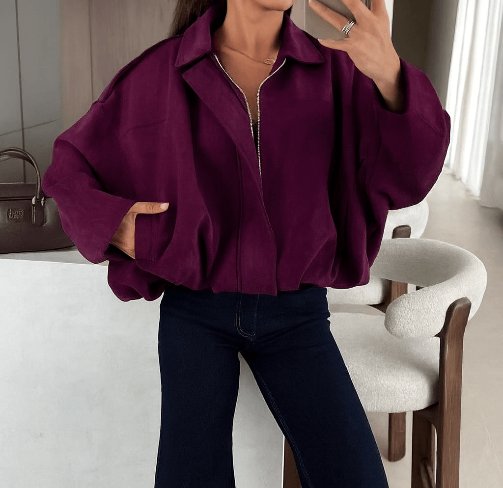 Plum power! Voeg dit suèdine jack aan je garderobe toe en straal kleur, comfort én stijl uit.