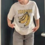 Breng een speelse en zomerse vibe naar je garderobe met ons must-have T-shirt met bananenprint! Dit unieke en vrolijke T-shirt is een perfecte keuze voor iedereen die zijn stijl een frisse en fruitige touch wil geven.