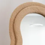 Creëer een warme en stijlvolle sfeer in je interieur met onze Grote Golvende Teddy Spiegel. Deze prachtige spiegel, met een afmeting van 160x60x4 cm, is omhuld met zachte bouclé teddy fleece stof in een warme bruine tint, wat zorgt voor een gezellige en luxe uitstraling.