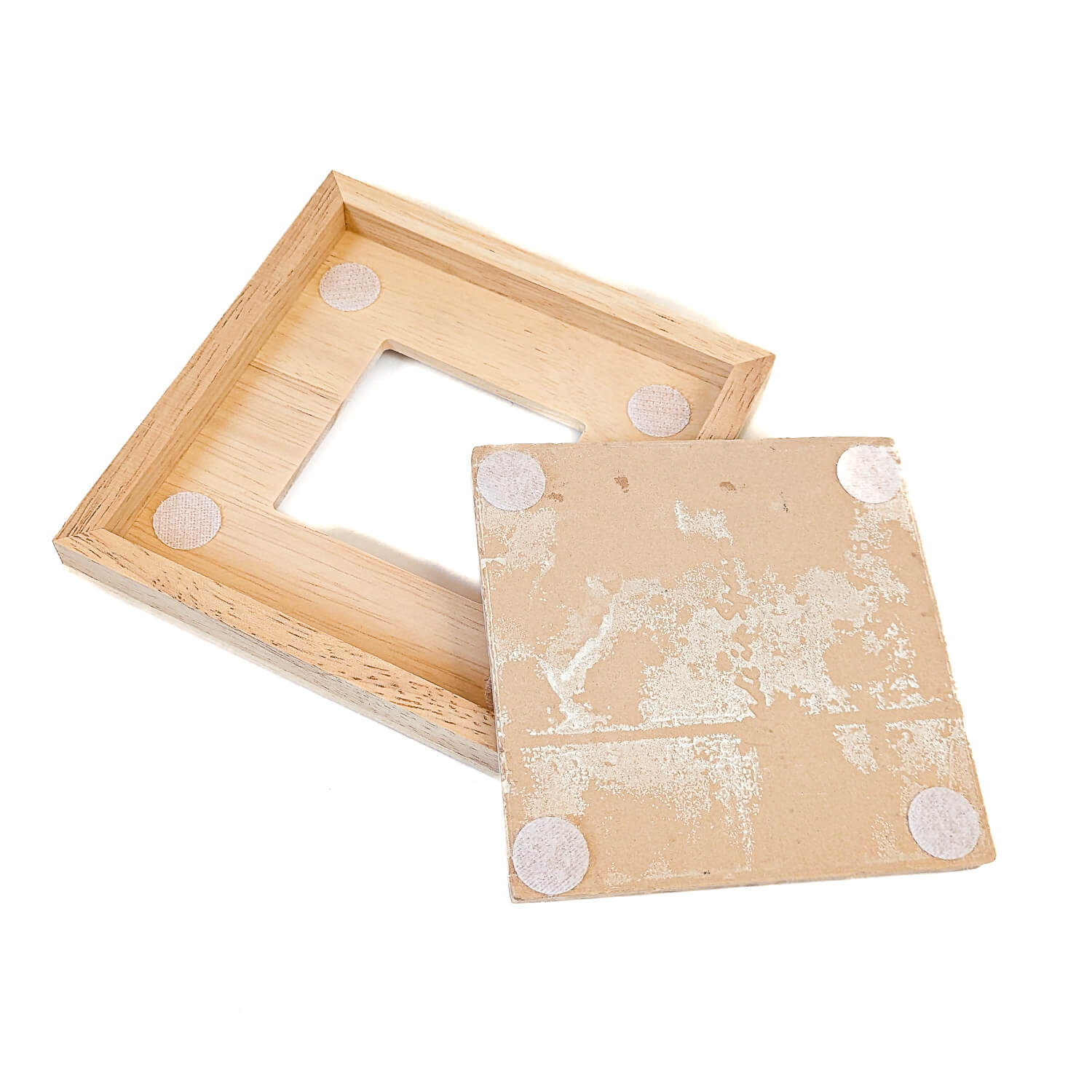 De houten lijstjes geven je tegels meteen een rustige, natuurlijke uitstraling en maken het extra leuk om te stylen, cadeau te doen of een opvallend hoekje in huis te creëren.