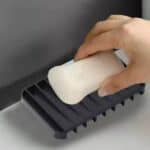 Dit zwarte siliconen zeepbakje is de perfecte aanvulling voor jouw badkamerinterieur. Met zijn strakke en moderne design zal het niet alleen je zeep netjes op zijn plaats houden, maar ook een vleugje elegantie toevoegen aan je badkamer. Het aflopende ontwerp zorgt ervoor dat het water gemakkelijk kan weglopen, waardoor je zeep langer fris en droog blijft.