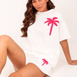 Deze witte set met matching T-shirt en short is dΓ© combinatie van cool & cute. Beide items zijn versierd met een felroze gehaakte palmboom β subtiel op het shortje, groots en in volle tropische glorie op het shirt. Bonus: het shortje heeft een felroze trekkoord dat nΓ©t dat beetje extra geeft.